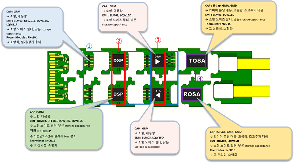 ・TOSA/ROSA(회로상 ④)는 신호를 송수신하는 part로 노이즈 특성이 가장 중요합니다.